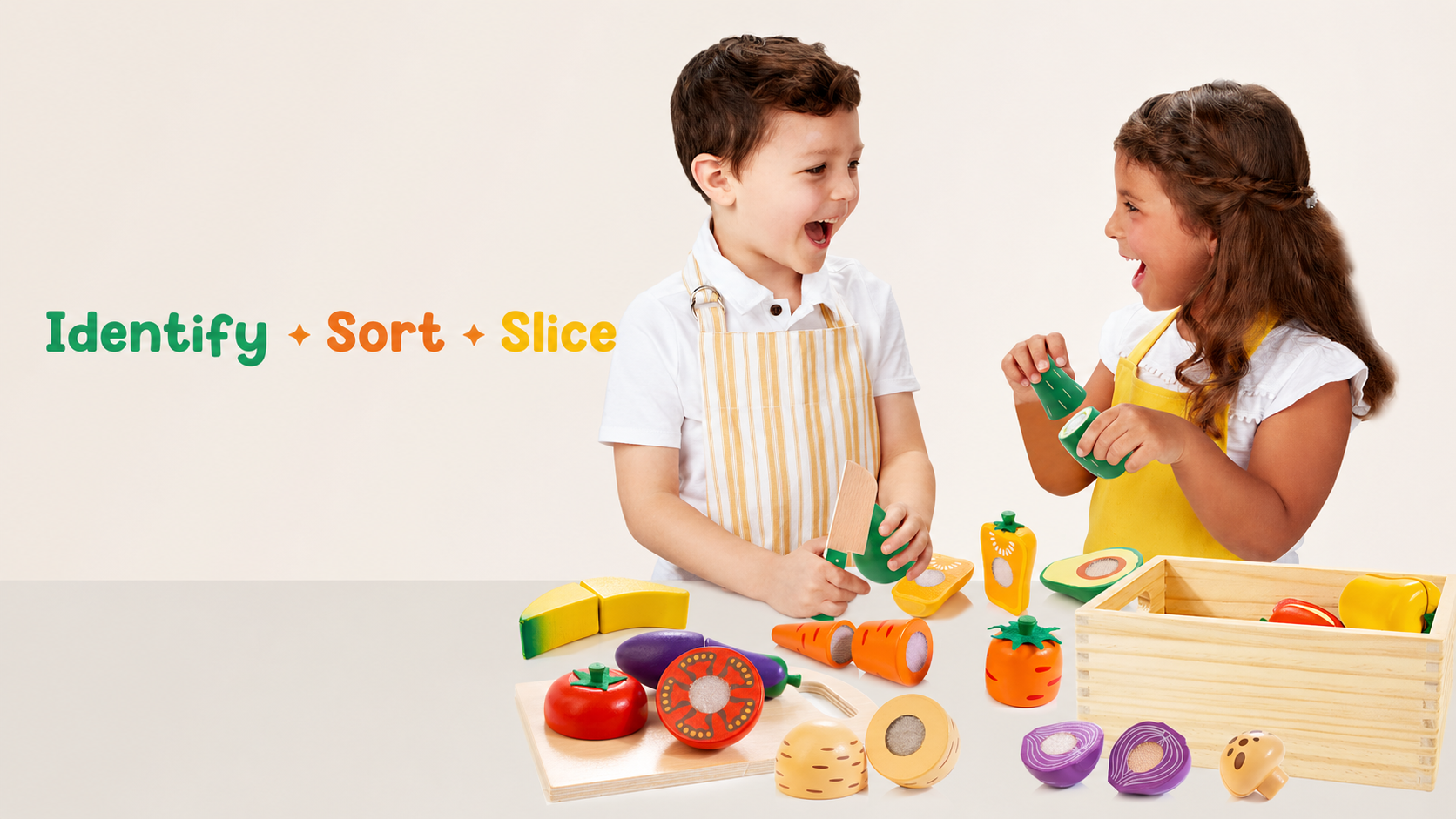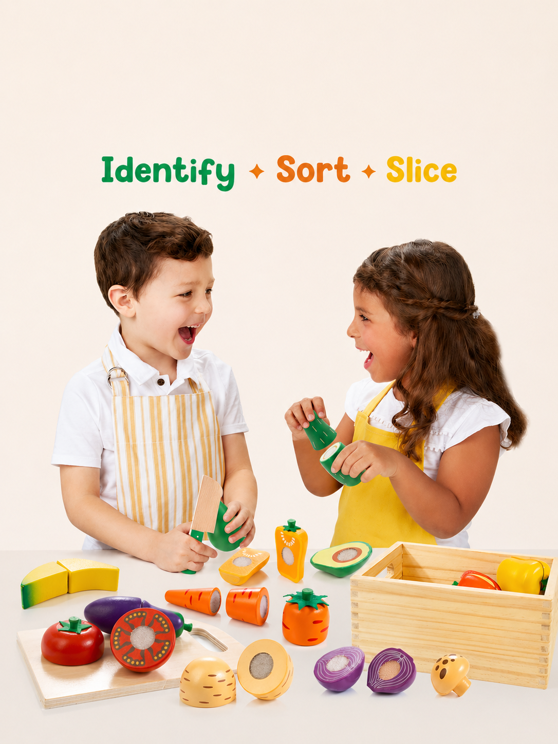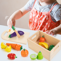 Wooden Play Food for Toddlers, Color Food Groups, Fruit & Veggies Cutting Set, Pretend Play Food Kitchen Accessories
