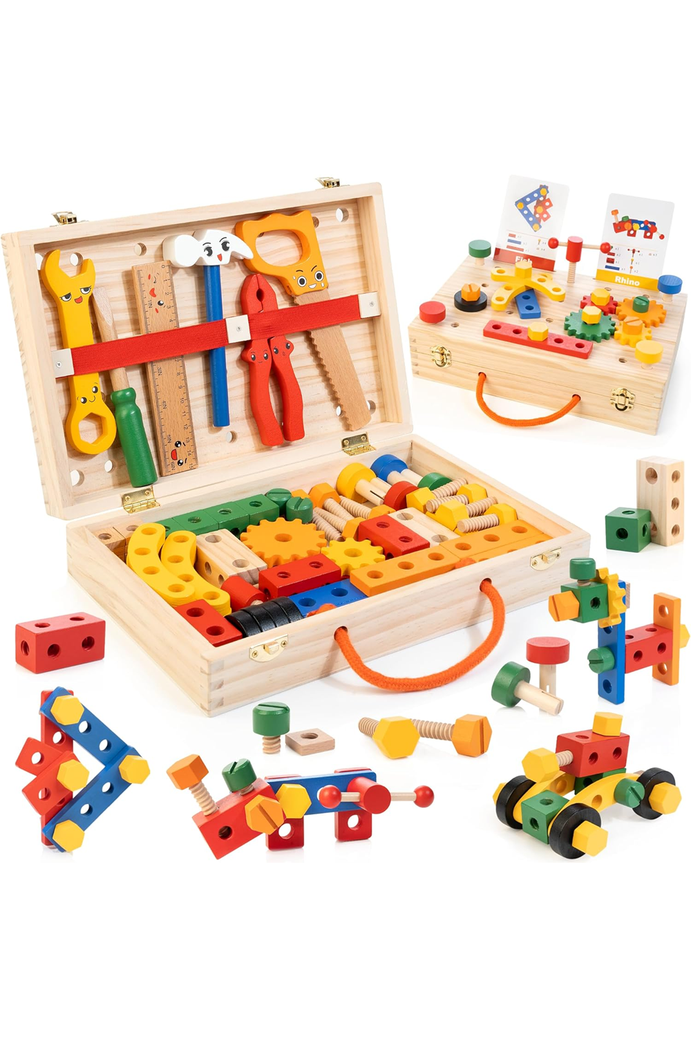 Regular price $59.99 USDSale price $59.99 USD Regular priceUnit price / per2-IN-1 DESIGN: This wooden tool kit can be transformed to make a workbench where kids exercise pounding, twisting, sawing, etc, and can also be folded up...